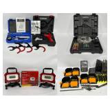 = Both Batteries Power On = Ryobi Tools Include; Work Light, Circular Saw, Oscillating Multi-Tool, Impact Drill, Drill & Reciprocating Saw = AutoJoe Cordless Air Pump