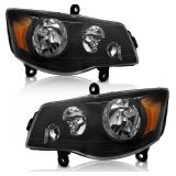 Headlights Assembly for 2011-2020 Dodge Grand Caravan,2008-2016 Chrysler Town & Country Black Housing Amber Reflector Headlamp Replacement Driver and Passenger Side