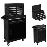 2 in 1 Rolling Tool Chest Storage Cabinet, Mechanic Tool Organizer Box, w/5 Drawers, Black