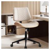 Home Office Chair No Arms with Wheels, Armless Small Desk Chair,Task Computer Office Desk Chair for Casual Office Small Space,Study Room,Reading Room(Beige)