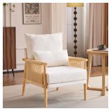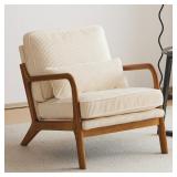 Accent Chair Corduroy Upholstered Armchair, Reading Club Chair with Pillow and Solid Wood Frame for Living Room Bedroom Furniture Off White