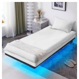 Upholstered Bed with Light and Petal Headboard, White, Queen