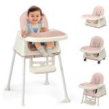 9-IN-1 MEALTIME FUN The Grow and Go Essential Rotating High Chair grows with your child from infant to toddler up to 5 years and 50 lbs. When the high chair is used in an upright position, it rotates 360°, allowing for easy feeding at every meal.