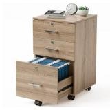 15.7W x 26H 3-Drawer Rolling File Cabinet with Lock/Mobile Printer Stand/Under Desk File Organizer for Letter Sized Files Oak