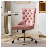 Pink Modern Office Chair with Adjustable Hight Golden Metal Base