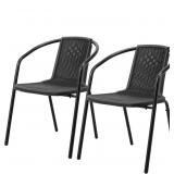 2Pcs Plastic Stackable Chairs, Weather-Resistant Outdoor Dining Seatings with Ergonomic Armrests for Lawn, Garden, Firepit and Restaurant Use, Black