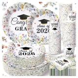 Hsei 250 Pcs Wildflower Graduation Disposable Plates and Napkins Floral Congrats Grad Disposable Tableware Set for 50 Guests Wildflower Paper Plates Napkins Cups for Girls Nurses Graduation Party