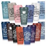 3 PACKS - 15 Pcs Christian Gift for Mother's Day Christian Tumblers Bulk Religious Teacher Appreciation Gift 16 oz Bible Verse Plastic Tumbler with Lid for Church Employee Staff (Morandi Color 2)