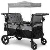 (95) Jeep Wrangler Deluxe 4 Seater Stroller Wagon by Delta Children - Premium Quad Stroller Wagon for 4 Kids with Convertible Seats, Adjustable Push/Pull Handles, Removable Canopy & Flat Fold, Grey