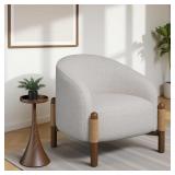 Armen living Stormy Accent Chair in Butter Cream Fabric with Chestnut Brown Finish