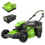 - [80V 21” SELF-PROPELLED LAWN MOWER] - Get more done, faster, with Greenworks electric lawn mowers. This 80V lawn mower cuts up to 1/2 acre with a fully charged 4.0Ah battery (varies based on grass condition and operator technique)