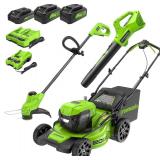 Greenworks 48V (2x24V) Electric Lawn Mower Combo Kit: 20"Steel Deck Push Mower, 12" String Trimmer, 320 CFM Blower, 3 Batteries & 2 Chargers