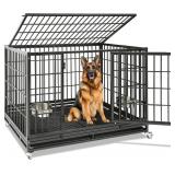 Homey Pet Large Dog Crates for Large Dogs, 47 Inch Heavy Duty Stackable Dog Cage with 2 Bowls, 4 Wheels, Double Removable Trays and Grids, Escape Proof Metal Wire Dogs Kennel Indoor