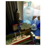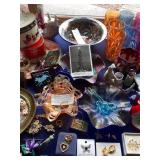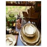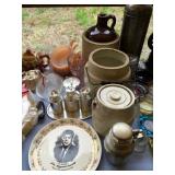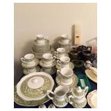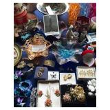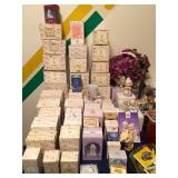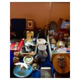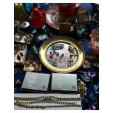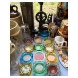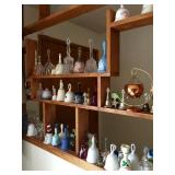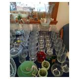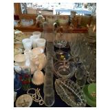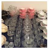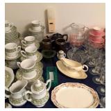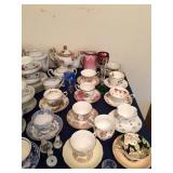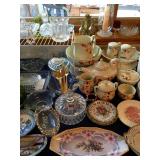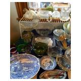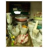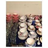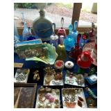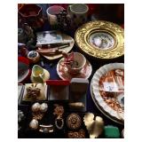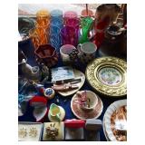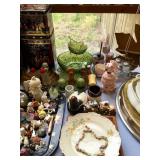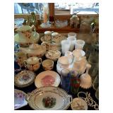 Glass, Pottery & China: Cup and saucer collection Carnival glass Precious Moments collection Hand bell collection Fostoria California pottery Hall pottery Lefton Princess House Fire King Jadeite coffee mug, D-handle Early American pressed glass Decorator plate collection