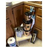 Kitchen items and appliances: Whirlpool refrigerator Amana refrigerator Sears Freezer Whirlpool stove Whirlpool dryer Pyrex and Corningware Tupperware Coffee pots Food Saver Crockpot Ninja blender Vintage ice cream maker Canning jars Vintage canisters Cuisinart Toaster Magic Bullet Sunbeam stand mixer Vintage McDonald’s glasses Wagnerware cast iron skillets Newer and vintage cookie cutters