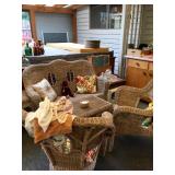 Furniture: Couch Side chair End tables Sewing cabinet Wicker furniture Oak entertainment center Oak bookshelf Curio cabinet Kitchen table w/ 6 chairs and 2 leaves Sears console electronic cabinet Queen-sized Sleep Number mattress set