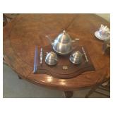 Inventory List Night stands Hanging light Med century table with lamp Shelf glass and wood Singer sewing machine with table Fruit picker Rod iron patio set with lounger Rockers Tread mill Pro Form Hutch Kitchen table and 4 chairs Crystal Dinning table with 8 chairs and 2 leafs End tables Sony flat screen Tv Tv stands 2 wing back chairs 2 sofas cloth table 2 tier Lamps Pewter tea set Plant stands Canister set with cookie jar Sofa table Vases CDs 2 king size beds Dresser Rugs Refrigerator Small yard equipment Dishes and linens Sony 55 in LCD TV Sony Receiver cmt mx500i with CD player |
