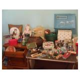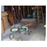 | Let me tell you a little about what you will see at this estate sale. Garage: tools, fishing gear with rods and reels, jugs and crocks, 2 old trikes, wooden ladder, an old trunk, an early 1900's car jack, Flexible Flyer sled, sofa and love seat, round oak table and pressed back chairs, child sized snow mobile, yard tools, leaf/grass bagger, and many other items. Kitchen: lots of glassware, Art Deco bookends, paperweights, flower frogs, 3 cookie jars, mid century cooking stove with double oven, mid century bread box, canister set, cartoon glasses, cookware, Polish serving pieces, mid century pots and pans set, pressure cooker and other assorted items. Living room: 3 tables full of vintage RHINESTONE jewelry, some pocket watches, 75th anniversary Mickey Mouse watch, and other assorted smalls. Front bedroom: vintage 45's and LP's including; Elvis, Beatles and large variety of other artists, sewing notions, mid century sewing stool, mid century stereo, mid century wind-up clocks, large variety of other smalls. Back bedroom: mid century stereo console, linens, some books, aprons, cute stand, brass floor lamp, swivel chair, magazine racks and other items. Bathroom: Avon and bathroom related items. Upstairs bedroom: Large variety of mid century aged dolls and toys. Mid century bedroom set with hi-boy dresser, triple dresser with mirror and double bed. All in nice condition. Leather bound World Book Encyclopedia set and childrens books. Basement: Large variety of mid century aged toys, trucks, older cameras, 2 typewriters, older movie projector, drying rack, 1940's dining room set (great for repurposing), drop leaf table to repurpose, mid century cabinet, metal kitchen cabinet, and other assorted items. There is a brief overview of the sale with a nice variety of items to offer. |