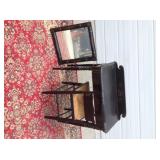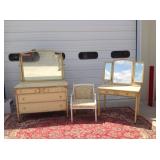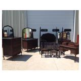 Furniture 7 Piece Antique Mahogany Bedroom Set Four Poster Bed, Vanity and Mirror, Gentlemen's Desk, Tall Chest and Dresser and Mirror Antique Oak Barley Twist China Cabinet and matching Server Antique oak Claw & Ball Foot Organ Stool Antique Pennsylvania Ladder Back Chair Cherry Permacraft Chippendale Chest and Dresser with Mirror Each with shell carving Chinese Chippendale Mahogany Arm Chair Ethan Allen Solid Cherry Corner Cupboard Hitchcock Painted Desk with chair and Matching Mirror Lane Cedar Chest Mahogany Carved Side Table w/ Matching Coffee Table Marble Brass Side Table Modern overstuffed Living Room Set Sofa and Chair Mother Hubbard's Cupboards Hoosier Style Kitchen Cabinet Oak Kitchen Table 2 Drawers with leaf 4 swivel leather arm chairs Queen Anne Mahogany Desk Shabby Chic 2 Piece Painted Trifold Dresser Tagged Quality Home Furnishing Co. Clarksburg WV Signed Limbert Oak High Chair Solid Cedar Wardrobe Marked Palace Furniture Co. Victorian Needlepoint Chair w/ Rose Carved Back Victorian Walnut Five Drawer Chest White French Arm Chair with Tapestry Upholstery Wicker Couch