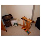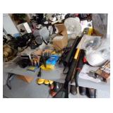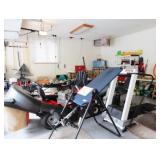 GARAGE Exercise equipment, inversion table, sport fitness treadmill, stationary bike, planters wagon, 2002 Toro wheel house riding mower 16-38 HXL rake and bag super blower attachment, recently serviced with new blades and tune up, air compressor, drywall taping tools, snow thrower, dog and cat items, small tools, tool chest, trunk and footlocker, surveying stands and top com survey equipment, Ryobi trimmer gas cans, hose and outdoor misc., whole house vacuum system, brass fixtures for a bathroom, Keller 10 and 8 foot ladders, yard games, stadium blankets and chairs, 2 dry air fans, skill saw, angle grinder, electric trimmer, Bosch, Dremel, Ryobi DeWalt, Coleman tools, 2 ton jack, golf clubs ladies set and man's set, golf balls, tees and gloves, golf shoes, so much more…..