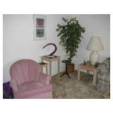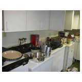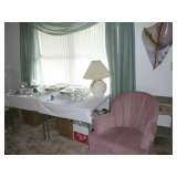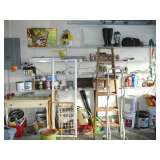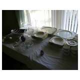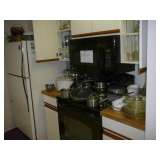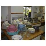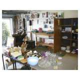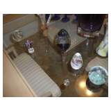 Paper weight collection, dining set, china cabinet, curio, sofa bed, recliner sofa, recliner, lamp table, 2 dinette sets, shelf, pr chairs, coffee & end tables, mirrors, 2 bed sets, nice glass, lamps, Daniel Hechter china, silk flowers, bird collection, linens, golf clubs, ladders, kitchenware