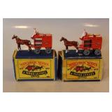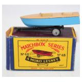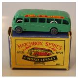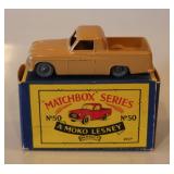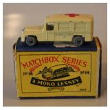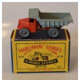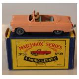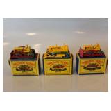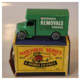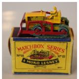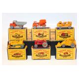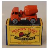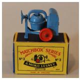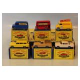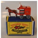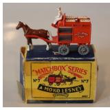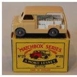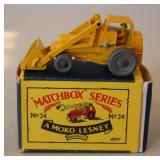Incredible Matchbox Collection: Matchbox #3 Cement Mixer w/ box, Matchbox #4 Massy Harris Tractor w/ slightly damaged box, Matchbox #5 london bus w/ Damaged box, Matchbox #6 Quarry truck w/ box, Matchbox #7 Horse drawn milk float w/ slightly damaged box, Matchbox #7 Horse drawn milk float w/ box, Matchbox #14 Daimler Ambulance w/ Slightly damaged box, Matchbox #17 Removals van w/ Slightly damaged box, Matchbox #18 Caterpiller bulldozer w/Slightly damaged box (3), Matchbox #19MG sports car w/ damaged box, Matchbox #20 Stake truck w/ box, Matchbox #21 milk delivery truck w/ slightly damaged box (3), Matchbox #22 Vauxhall Cresta w/ box, Matchbox #23 Berkeley Cavalier trailer w/ box, Matchbox #24 Weatherhill Hydraulic Excavator w/ box, Matchbox #25 Dunlap truck w/ slightly damaged box, Matchbox #26 concrete truck w/ box, Matchbox #27 Cadillac Sixty Special w/ slightly damaged box, Matchbox #28 Bedford compressor truck w/ box, Matchbox #29 Bedford milk truck w/ box, Matchbox #31 American Ford station wagon w/ box, Matchbox #34 Volkswagen panel truck w/ box, Matchbox #38 Karrier refuse collector w/ Slightly used box, Matchbox #39 ford zodiac convertible w/ box, Matchbox #42 Bedford evening news van w/ box, Matchbox #48 Meteor boat & trailer w/ slightly used box, Matchbox #49 Army personnel carrier w/ box, Matchbox #50 Commer pick-up truck w/ box, Matchbox #51 Albion Chieftan w/ box, Matchbox #52 Maserati 4CLT w/box (2), Matchbox #55 Duck boat, Matchbox #65 3.4 liter jaguar w/ box, Matchbox Accessory #1 Petrol pumps and sign-Esso w/ box, Matchbox Accessory #2 Bedford Articulated four car transporter truck w/ slightly damaged box, Matchbox Accessory #3 Metal lock-up garage w/ box, Matchbox major packs #1 Caterpiller earth scraper w/ box, “matchbox” Garage showroom & service station for matchbox toys(2) Matchbox Connoisseur’s Collection LE 6 cars, Loose Matchbox cars, Matchbox Motor Dealership set, Matchbox Models of Yesteryear, Lightning key cars, the original, etc. Mobile vehicle series #8 Volkswagen saloon car w/ box, Mobile vehicle series #12 Volkswagen Micro bus, Miniature hand painted old timer antimony locomotive w/ damaged box, Charbens miniature series wagon, smallest old timers ever made, etc.