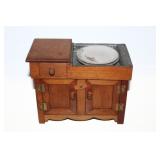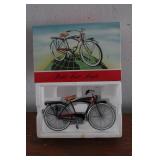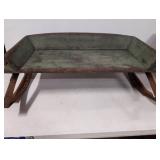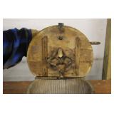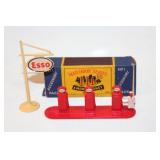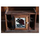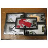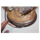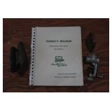 Antiques, Toys, & Collectables: Rooster weather vane “James” w/ primitive barn wood stand, School desk, Mirror, Various baskets, Pennsylvania rubber and supply company ruler, 3 table lamps, 6ft bronze hall tree, child’s wicker rocking chair, sm. wooden chair, cradle, (4) antique car pics, 3 foot paper Santa, Saginaw Creamery milk can, Stained glass “whisky” sign, stained glass beer sign, Beet eater London distilled dry gin mirror w/ guard embossed in middle, Stroh’s for Real Beer Lovers mirror, Smirnoff mirror, Sorrento Amature carving tools, antique wagon seat, fish molds, 2 native floor mats, porcelain set of 4 chickens, 2 sm. Elephants, J. Marttini Finland Knife, 57 Panhead rock w/ embossed motorcycle, Circus clown w/ Saxophone, Norman Rockwell Porcelain figure, Gearbox Gas Pumps incl. John Deere coin bank, Pennzoil, 2 antique levels incl. cast angle level, Corsair tripod w/ box, Beams 180 Months Kentucky Bourbon in case, Maisto SE Jaguar XJ 220 1:18 scale die cast car, Childs crib, Kalamazoo train set, Kalamazoo toy train, etc.