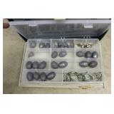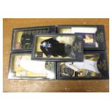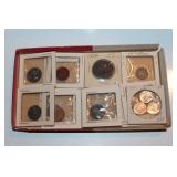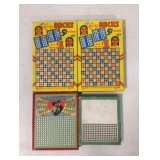 Coins & Jewelry Coin collection incl. (7) Carson City Silver Dollars, Several othe Silver Dollars, 100+ Proof and Mint sets, Coin books, (9) Standing Liberty silver half dollars, (4) Barber silver half dollars, (2) Barber silver quarters, (3) Barber nickels, (7) Liberty Head silver dimes, Kennedy half dollars mostly 40% but a few 90%, FDC Liberty dollar coin book, Lincoln Cent books, Large wheat penny lot, & 1 Silver Certificate, etc. Sm. collection of jewelry incl. 14K, 10K gold bracelets, rings, Sterling Silver, Costume jewelry incl. broaches, bracelets, rings, pins, earrings, necklaces, beads, pearls, etc. Costume Jewelry Oak jewelry cabinet including 7 drawers, 4 doors and flip top mirror- some jewelry included. Oak jewelry cabinet with 7 drawers, 2 doors and a flip top mirror- some jewelry included. Dresser top jewelry box with flip up mirror and 2 drawers- some jewelry included. Lot of costume jewelry incl. necklaces, bracelets and figures- owl and tree, Box lot of jewelry incl. necklaces and bracelets. Flat lot of misc. jewelry incl. broches, feathered necklaces and beaded necklaces, Box lot of jewelry with watches and necklaces- costume, Lot of costume jewelry including watches, necklaces and amulets. Lot of jewelry with alcohol themed belt buckles, shot glasses, small silverware and miscellaneous necklaces. Box lot of costume incl. broches, earrings and bracelets. Box lot of jewelry bagged incl. patches, pins and broches. Lot of beaded costume jewelry and watches. Box lot of 2 jewelry boxes. Flat lot of costume jewelry boxes. Group of sectioned pins, earrings etc. Box lot of Wade figurines and miniature toy cars/planes Punchboards: Great selection of Punch boards incl. Triple Threat, All American Charley, Bowling, Roulette, Chest of Gold boards, Ocean Queen, Donald Punch board, Track odds, Bonus Coins, Grand Prizes, A Top Number punch board, Tommy Board & Jackpot Ivy, Red White & Blue, Cigarettes punchboard, Busty lady, Big Ben punchboard, Cigarette counter, Texas Charley, Blitz, Defense Stamp & Bond punchboard, Punch’em out, Peachy, Big Boom Silver King punchboards, quick action, (3) Bonus coins, Wind Watch, Three Way Thriller, Free States Extra Special, Knee High, Double up, (2) Lovely Figures, Fins ‘n’ Deuces, Fast Fives, Bills Jack pot, Hot Spots, Slimben, Fast Action, Tips Special, Mystery Bucks, Penny Cigerettes, Card Winners, Mini Jureps, Vacuum Packed Peanuts, Double or Nothing, Winners, Game of Hands, (2) Texas Charlie, Odd Pennies Put Take, New Water Kolors, Nickel Special, etc.