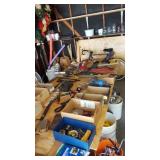 | Beautiful looks new Thomasville Dinining room set: table & leaves, 10 chairs, buffet, 2 corner cabinets, white French bedroom: 2 twin beds, dresser & mirror, chest, night table, King bed with sleep number mattress, Antique table & 4 chairs, Sofa & chairs, Craft sewing table with adjustable height & cutting board size 73"x42", Bar stools, linens, pictures, kitchen ware, china, crystal, Waterford, Kitchenaid mixer, rugs, games, florals Garage with tools, fishing poles, bicycle, ladders, cleaning supplies, auto supplies, yard supplies, yard tools, refrigerator, lawn furniture, concrete bench, park bench, plow, metal shelf unit |