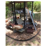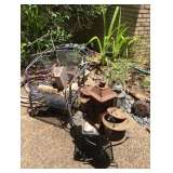 | Appliances: washer & dryer, Samsung refrigerator 3 door bottom freezer, Herman Miller draft table, 2 queen beds, chairs, tables, bookcases, Antique file drawer cabinet, Carved wood folding screen, work desk and computer desk, Futon, Flat screen TV, Art scuptures-pottery-paintings, Sterling goblet set, Lamps, office supplies, reading stand, games, crosses, Mikasa & Noritake china, Waterford crystal, dishes & kitchen ware, books on art-travel-novels-children stories, Art & craft supplies, linens, large wood easel, small apt refrigerator, Ladies clothes, Wedding dress, Jewelry, shoes, evening bags & purses Garage & Tool Shed: Utility wagon, 3 in 1 chipper, Wood block & tackel, vehicle ramps, hand grinding wheel, house jack, Log roller, garden tools, Robi recipical saw, Radial arm saw, 14" electric chain saw, Band saw 10", hand crank grinder, Atlas drill press, Rotter, Wood table saw with clamps, 12' Fiberglass ladder, heavy duty electrical cords, hand tools, chains, camping, Cress Klin, Yard art & decor, iron table & chairs, large pots, plants, rocks, statues, fire chimneys, iron arbor bench, umbrella stand and a lot more |
