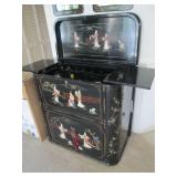 | Mother of Pearl oriental cabinet and bar, canopy queen bed with oriental design headboard, dresser, sofa sleeper, wicker cabinet, dining table & chairs, Tommy Bahama folding chair, mirrors, desk & shelves, lamps, bookcase, vintage Art Deco glassware, oriental & African decor, African milk jug, pottery, wood carvings, Prada handbag, clothes, full kitchen, linens, books, tv, nice accessories, holiday decorations, yard tools, garage cabinets. Collectic clean home of well maintained items. |