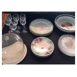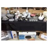 KITCHEN/LIVING: · Set of Gorham “Delamere” China · Set of 1847 Rogers Bros Flatware in Box · Adorable Tea Pots and Tea Sets · Crystal and Cut Crystal · Glass, Stem and Bar Ware · Bake and Cook Ware · Cup Cake Stand · GoldStar 800 Watt Microwave NIB · Delft · Linens · Pretty Wall Art and Metal Decoratives o Horse/Riding Theme Prints & Accessories · Candles and Candle Holders/Sticks · Faux Plants and Trees · Snowy Village Glass Mug Set · Nice Floor and Table Lamps · Crock Pots · Choppers