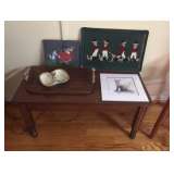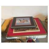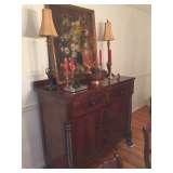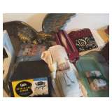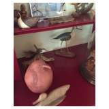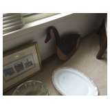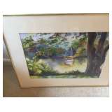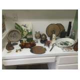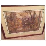 Wonderful selection of signed waterfowl art by Joyce Ziegler, Martha Hudson, Richard Bishop, Art LeMay, Dave Sellers. Decoy carving by John Mullican, Larry Tawes, John Kouschinski, Bob Lee. Furniture includes decorator chairs, leather sofa, stepback cupboard, primitive cupboard, curly maple slant front desk tables, oil lamps, Wedge- wood China (appledore, ying cloud), antique oriental rugs, gured, coffee table, deco- rator lamps, kitchen stools, twin sleigh trundle bed, carpenters chest, marble top table, antique Singer sewing machine and stand, garden items, Weber gas grill, wicker bistro set, Demarle kitchen items, Lenox collector plates, campaign buttons, much more! |