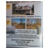 In 1913 when this house was built for the Welch Family, there were only 3 houses, the Presbyterian Church and a cotton field on College Street. A steamboat from Paducah, Kentucky traveled down the Tennessee River with the materials for the Tate brothers to build this home. The fireplace mantel in the formal parlor and dining room, separated by pocket doors, along with the heart of pine flooring, considered the very best, were a part of this shipment. 10 feet ceilings throughout the first floor including the hallway, master bedroom (20x17) with walk-in closet, full bath and door to the wrap around porch, and princess bedroom. The roomy kitchen with pine cabinets is open to a 14X16 sunken hearth/eat-in room. The Carrolls constructed an enclosed sun room, a pine paneled den, with fireplace and built in bookcases, along with a double car garage with upstairs game room to the back on the house. A beautiful stairway leads upstairs to the 2 bedrooms, full bath and study with built-ins. Concrete patios are found at the back of the house and the front beside the shared driveway. The house was painted a bluff color with maroon trim by Mr. Wyche, a Dutchman. Little has changed through the years as much of the original wood work, doors, trim and even some wallpaper remains. Dr. J.W. “Jim” and Thelma Carroll bought the house in July of 1950 from The Hinton’s. Well known and loved by all, Mrs. Thelma and their children Jimbo, Creed and Catherine called this home for 66 years! As a testament to the family, the Hardin County Football Stadium is named for and remains The Dr. Jim Carroll Stadium. It is indeed an honor to offer for sale at Public Auction this historic house along with 150+ antiques from the Carroll house along with 100+ antiques from another super estate. With Stevens Auction, John Dwight Stevens, Aberdeen, Miss. 662-369-2200 TFL#6042, you may visit www.stevens auction.com for pictures, list and terms. Real Estate Terms; 5% buyer’s premium at live auction and 10% buyer’s premium Internet bidding, applies to real estate. House sells AS-IS and will be open for your complete inspection beginning Monday September 26, by appointment. Open house dates to be announced. Homes built prior to 1978 are subjected to have lead based paint. In accordance to federal law, all potential buyers will be allowed 10 days prior to sale to have the home inspected at buyer’s expense. Tony Neill TFL#1468 call 731-926-3133