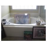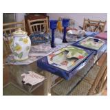 Vintage furniture including corner cabinet, wash stand, dresser with oval swivel mirror, chests/dressers, barley twist table, rocker; Louis Shanks Glass Dining Table and six chairs, sofas, occasional tables, home decor including framed art, lamps, mirrors; nautical, kitchen items, linens (comforter sets, sheets, towels), books, household, fishing, wood bench, garage, more. |