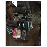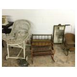 A quaint home with antiques, fine china and crystal, Early American furniture, old carriages, vintage newspapers, tools and other great finds! • Wood dining table w/ 6 cane back chairs • Hutch • Stemware • Bakeware, stainless steel pots and pans w/lids • Sideboard w/hutch • Vintage Beatles board game • Vintage costume jewelry • Stamp collection • Old German clocks • Bernina 1230 Sewing machine w/attachments and accessories • Side chair • Recliner • Robt Schwartz stoneware jug • Candlestick lamp table • Large copper pot w/handle • Small writing table • Upholstered sofa and side chair • Drop leaf coffee table • Spindle end table • Cabinet end table • Dansk dinnerware set (Umbrian Fruits) • Belt and holster • Vintage Lenox dinnerware set (Castle Garden pattern) • Old 48 Star flag • Old wicker baby carriages and strollers • Old wooden doll cradles • Old Singer sewing machine • Ruby glass pitcher and glasses set • Vintage Pitcher and Bowl set • Vintage Hanson nursery scale • Vintage glass serving platters • Victorian Soup terrine • Waterford crystal lamp • Anvil (Steel over cast iron) • Kenmore Microwave • Utility Cart • Tiled kitchen table w/ 2 chairs • Blender, hand mixer, pressure cooker • Patio dining set w/umbrella • 1960’s newspapers - John Lennon death and more • Piccolo • Secretary desk (drop down) • Chest of drawers • Vintage trunk |