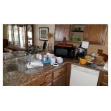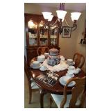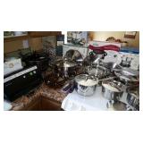 LARGE DINING TABLE 6 CHAIRS AND MATCHING CHINA CABINET WALNUT SOFA TABLE STONE AND IRON SOFA TABLE STONE AND IRON COCKTAIL TABLE AND LAMP TABLE LAMPS SOFT BEIGE SOFA AND LOVE SEAT CHOCOLATE BROWN COMFY LEATHER CHAIR SMALL BLUE SWIVEL ROCKER ELECTRONICS BOSE SPEAKERS AND ONKYO RECEIVER KARAOKE EQUIPMENT AND LARGE ASSORTMENT OF TAPES DARK OAK DINETTE TABLE AND 4 CHAIRS OAK CHEST WHITE LACQUER KING BEDROOM SUITE WINE STORAGE TABLE SMALL GATE LEG TABLE CRYSTAL KITCHEN ITEMS REFRIGERATOR/FREEZER EXERCISE EQUIPMENT PATIO FURNITURE YARD ART CHRISTMAS GARAGE ITEMS |