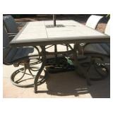 | To highlight- Dining room set with six chairs; matching china hutch and server; casual, glass top dinette set with six chairs; ultra-suede sable brown sofa; recliner; Yamaha electronic piano with stool and amplifier; white coffee table with slide out drawer; queen mattress set with headboard; Stainless steel Char-Broil BBQ; Queen sofa sleeper; six drawer dresser; patio furniture; tools; refrigerator; BBQ pit; live plants; large bird cage; air compressor; fishing and camping equipment; huge decorative mirror; various tables; washer and dryer and much HH (household items). |