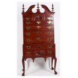 - Fine wild black cherry Chippendale style highboy with claw ball feet (finish #24, style #142)