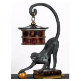 - MAITLAND SMITH including neat round Monkey table, leather arm chair, monkey table lamp and pictures