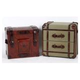 - Smith or Alexander steamer trunk style 2 drawer chest and European style leather lift top trunk