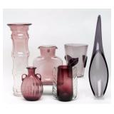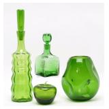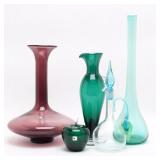 - Winslow Anderson (Sea green pitcher, #948 and 948-S amethyst Neck decanters, #9724 Emerald 19" vase, #9432 Topaz vase with applied cobalt threading, 1967 Turquoise decanter, #949 Lime green vase)