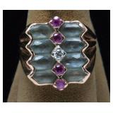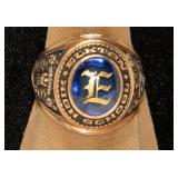- 10k yellow gold including Lions head ring with diamond, Elongated filigree ring with melee diamonds, 1966 Elkton High School class ring, London blue topaz with melee diamonds ring, Pendant with pear faceted blue topaz, Carved shell cameo broach, etc.