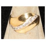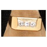 - 14k yellow gold gentleman's ring with three brilliant cut diamonds