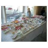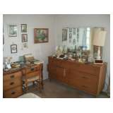 *RETRO SALE* 4 SECTION 1950'S SOFA, BOOMERANG COCKTAIL TABLE, 2 50'S BR SETS, 50'S DR TABLE & CHAIRS, 2 MID-CENTURY DESKS, WEDGWOOD QUEENS WARE CHINA, ROSENTHAL, ENGLISH TEA CUPS, DOZENS OF DOLLS, TABLES FILLED WITH QUALITY COSTUME JEWELRY |