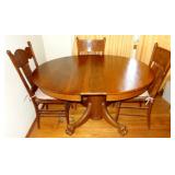 * VINTAGE OAK CLAW FEET PEDESTAL TABLE