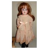* PORCELAIN HEAD / ARMS, JOINTED LEATHER GERMAN DOLL