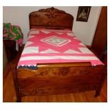 * GORGEOUS TIGER OAK BED WITH APPLIED CARVING