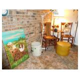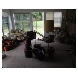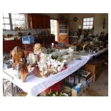 3 Hard Rock Maple Dining Sets w/chairs/leaves, Office Desks, Sewing Machine in Cabinet, Boxes of Vintage Material, Sewing Notions, Years, Threads, Vintage Shoes, Vintage Handmade Doilies, Vintage Sheets, Vintage Pillows, 5 Handmade Quilts, Cast Iron Stove, Massive Cauldron, Handmade Wooden Duck Decoys, Yard Tools, Treadmill, Bike, 3 Dressers, Mirrors, Chest Drawers, Coo Coo Clock, Wooden Headboards, Bedside Tables, Wooden Coffee Tables, German Mantle Clocks, Vintage Pottery Everywhere, Major Lamp Collector, Fabulous Kitchen Finds, Great Pots/Pans, Kirby Vacuum, Great Art in Varies Genres, Oodles of Wonderful Lamps, Tea Cup Collection, Blue Transferware, Vernon Kilns Plates, Many Wooden Side Tables, Several Upholstered Chairs, Over 40 feet of Fun Smalls ~ Collectibles & More, Kitchen Overflowing, Kitchen Mini Appliances, Books, Electronics, Linens, Yard Goodies, Garage Full, Estate Jewelry, Fishing Nets, Tables of Work Tools, Vintage Christmas, Ashtray Collection,