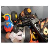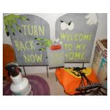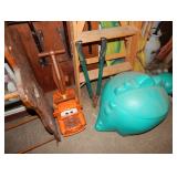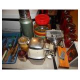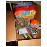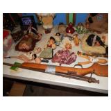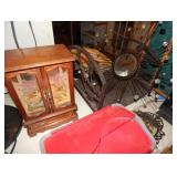 BEER SIGNS, KEY WOUND CLOCK, INDIAN DECOR, ARROWHEADS, SHOP VACS, SHOP LIGHTS (HALOGEN), FISHING NETS, COOLERS, 5 DRAWER CHEST, LOTS OF KIDS BOOKS AND TOYS, FOLDING TABLES, QUILT STAND, ROCKING CHAIR, PUB TABLE AND 4 BAR STOOLS, LINENS, OLD RIFLE FOR PARTS, HEATERS, DISHES, NESCO COOKER, TOASTER OVEN, LARGE GOAT BELL, JIM BEAM DECANTERS, DRESSER, QUEEN SIZE BED, LARGE PLASTIC TOOL BOXES, EXTENSION CORDS, SPORTS CARDS, SEVERAL FRAMED PICTURES, SEVERAL TOTES, WOOD BOOKCASE, HELLO KITTY BABY STROLLER, FIESTA, MISC. TOOLS, CRAFTSMAN LASER LEVEL AND MUCH MORE